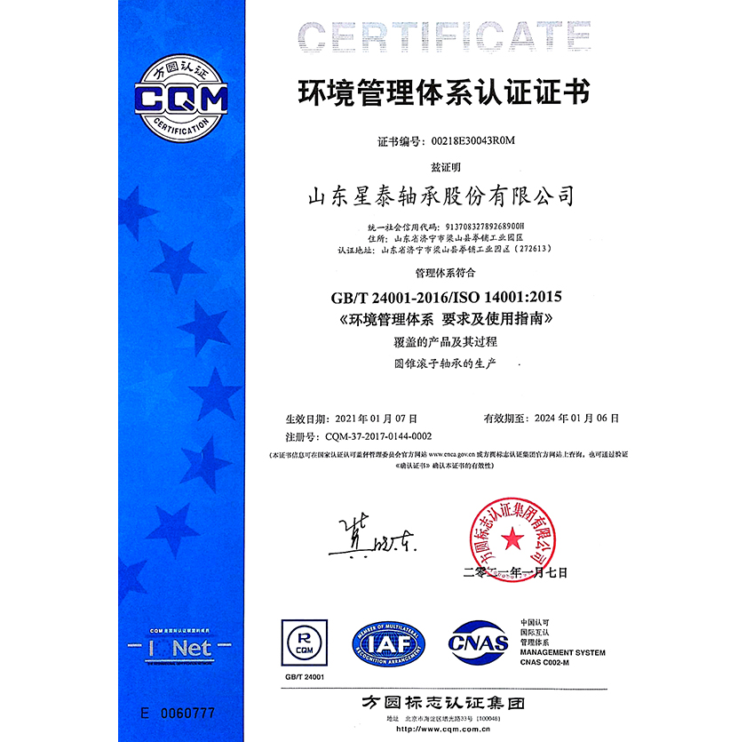 環境(jing)管理體系認證證(zheng)書